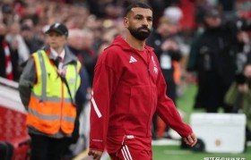 当安菲尔德终场哨响,萨拉赫独自留在场上,...